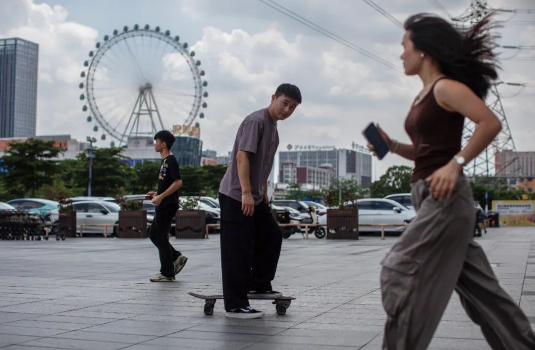 ▲休假期间,晓东喜欢独自在住处附近的广场练习滑板 图/本刊记者 大食